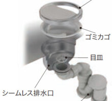 ※シームレス排水口ではありません。また、洗剤カゴも15cm小さくなります。